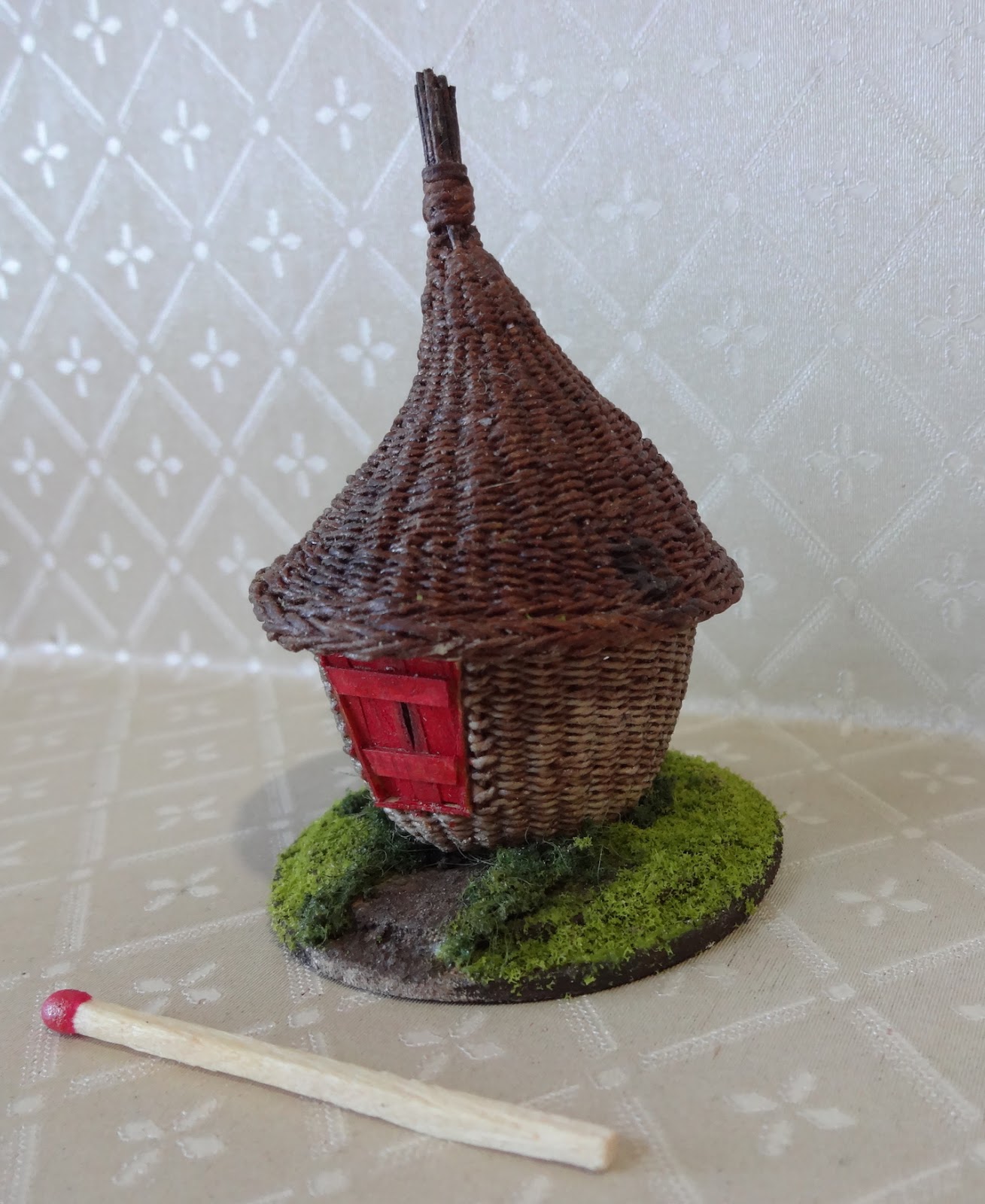from the serious business of basketry!! And this is what I played with today. I know it's still weaving but there you go!! Tomorrow I will start playing more seriously with some paper clay etc and build myself a little fishing shack! I need to have a break from the continuous weaving of baskets!!