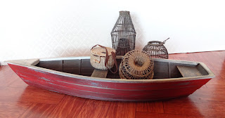 .....but not entirely complete. Still working on the rollocks and oars - but they are on the way. In the meantime, I've finished painting one of the boats and put some of my fishing paraphanalia on and around it - and it looks not too bad.