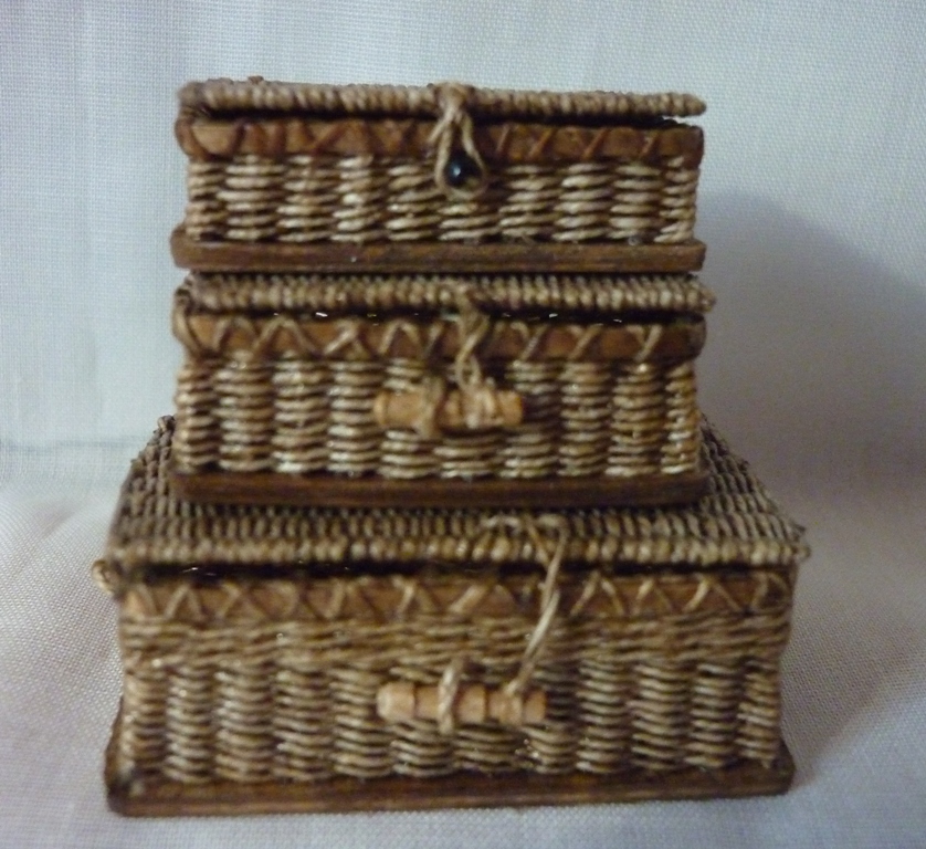 used a 3 x 2 plaited border and am tickled pink with the result. As you may (or may not) know, I do not glue borders on to my work. All my borders are worked as in RL baskets (and I won't go into the details of how here) so I'm very pleased that I managed to master this one!! I've been working on it long enough!